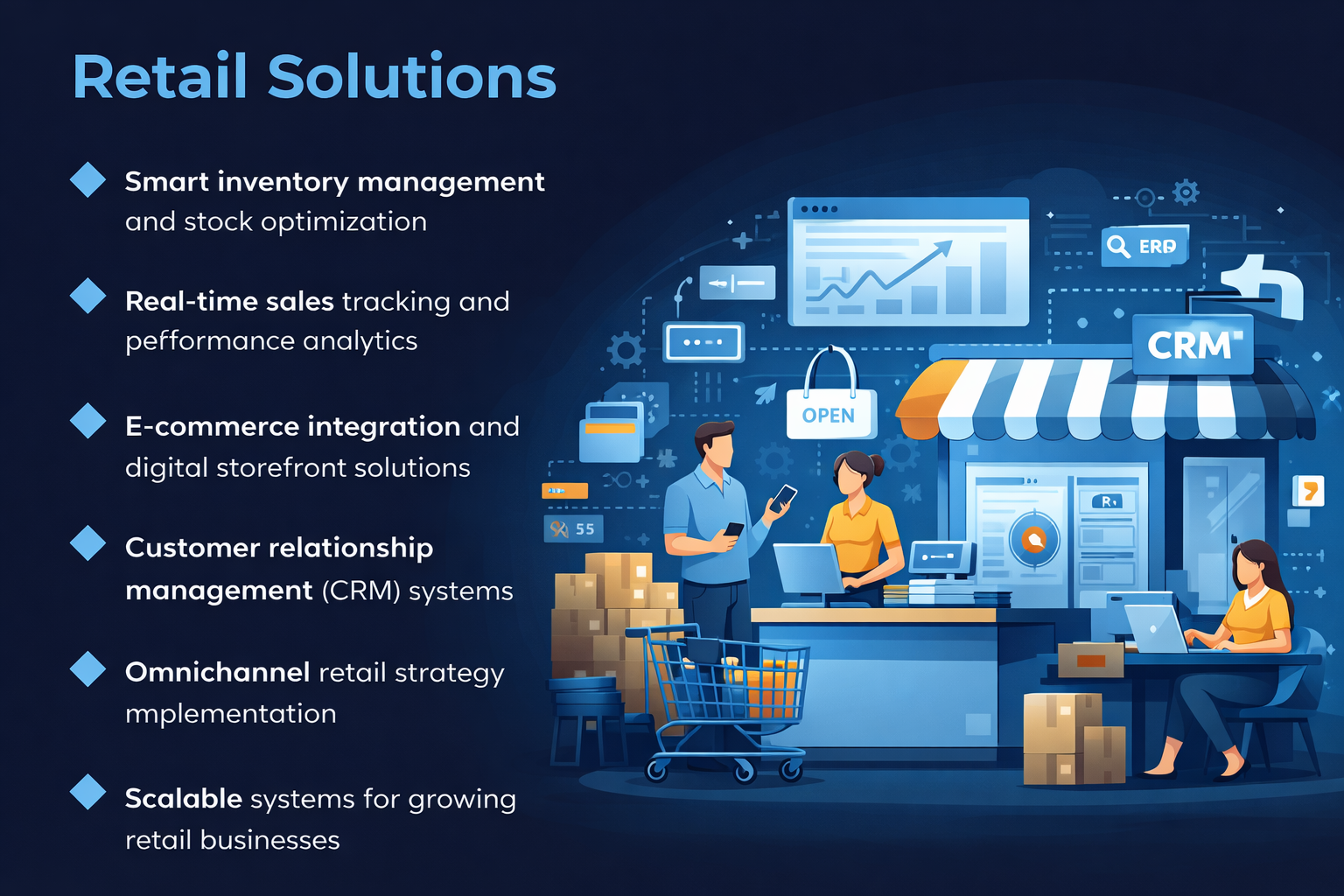 At Amohaa, we empower retail businesses with smart, technology-driven solutions designed to enhance customer experience and streamline operations. We understand the fast-paced nature of the retail industry and provide real-time systems that improve inventory management, optimize sales performance, and strengthen digital presence. From automation and data analytics to e-commerce integration and customer engagement tools, our solutions help retailers increase efficiency, boost revenue, and stay competitive in an evolving marketplace.